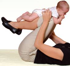 Dos 6 até aos 9 meses: O seu filho tem os braços e as pernas mais fortes. Agora podem fazer brincadeiras mais activas, como a do avião (pegar no bebé pela cintura). Também pode colocar o bebé nas suas pernas, como se mostra na imagem, e movê-las, o que o vai divertir muito.