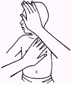 No segundo exercício, com uma mão sobre o ombro, faça girar a cabeça do bebé até que a orelha toque no ombro.